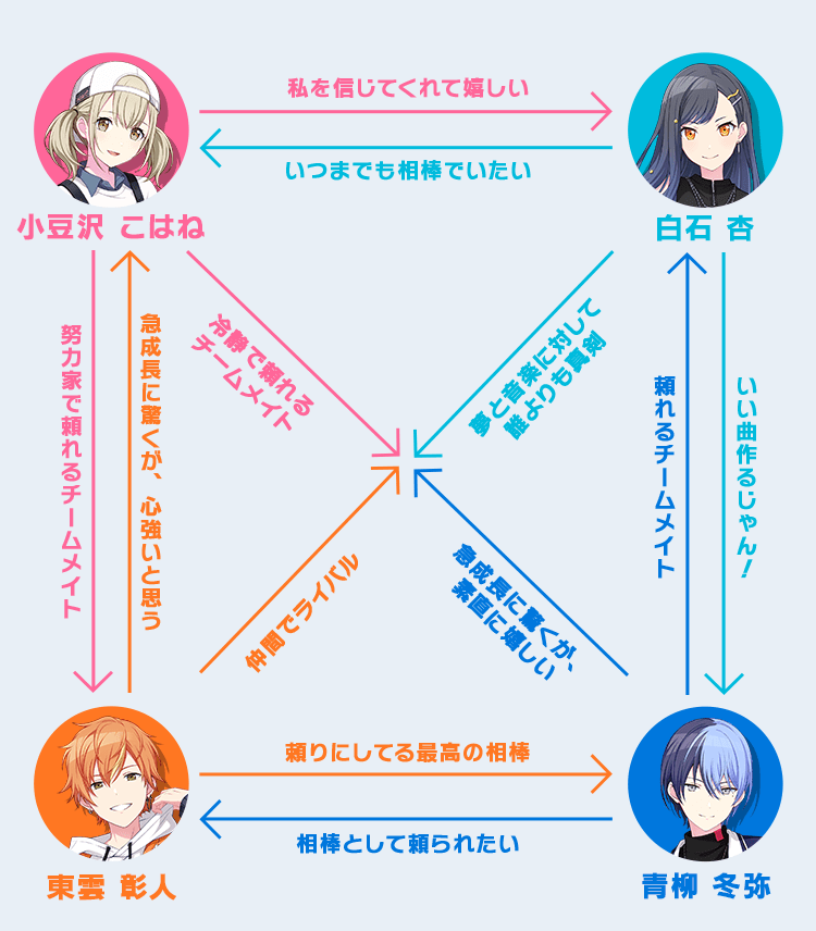 ストリート沿いのカフェでマスターをしているMEIKOとそこのお手伝いのミクとDJレンが、こはね達が本当の想いと向き合えるよう、相談相手になってくれる。